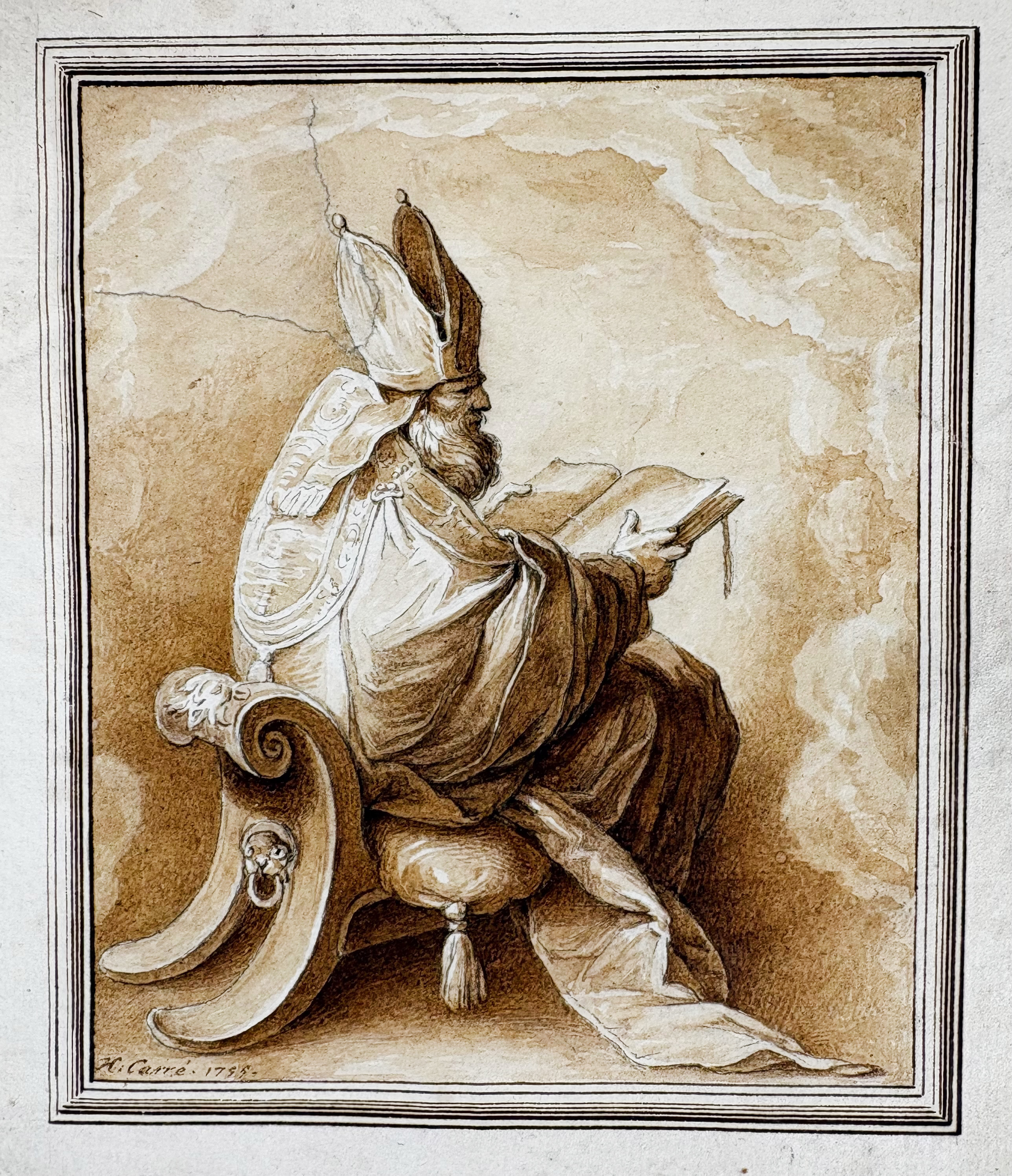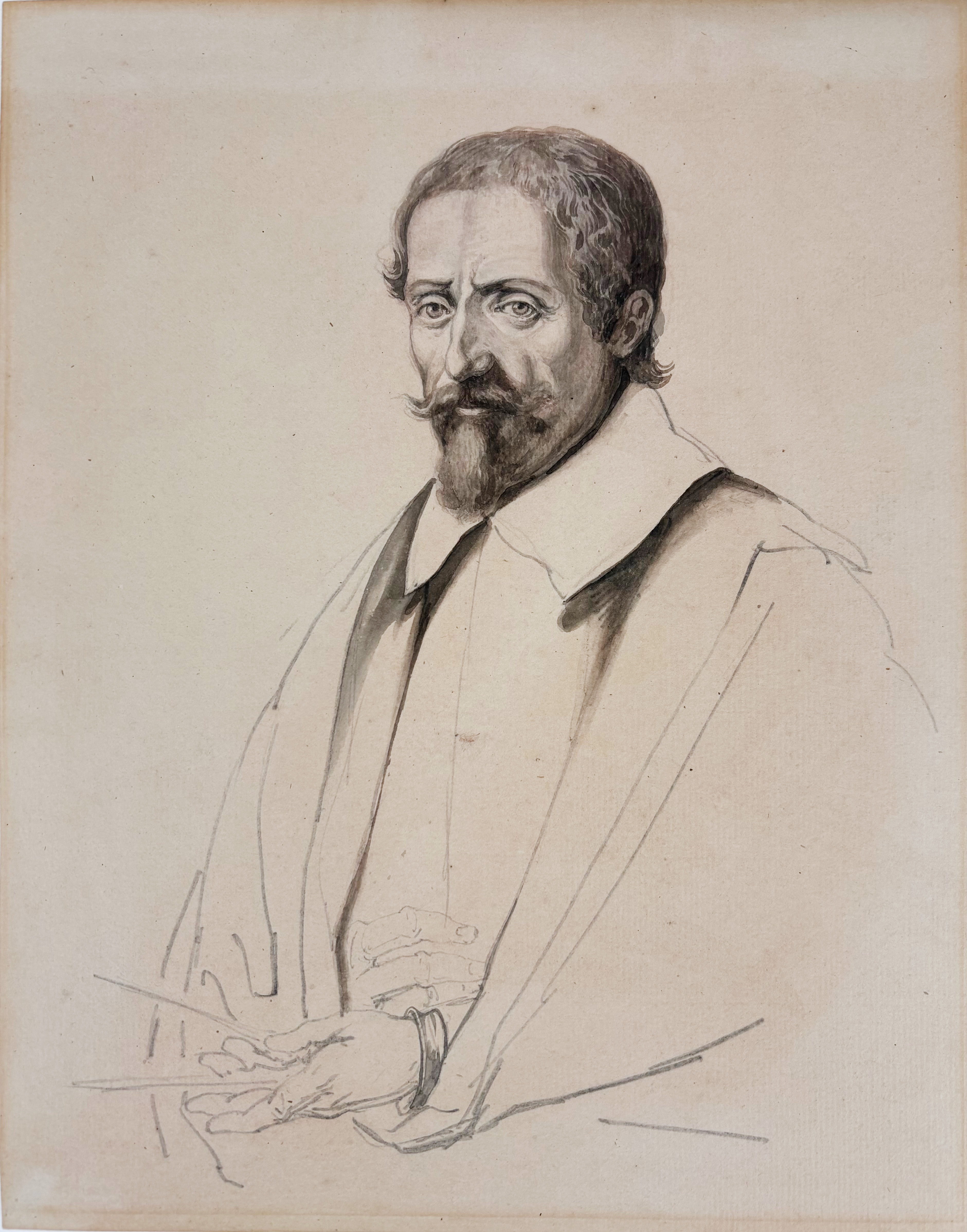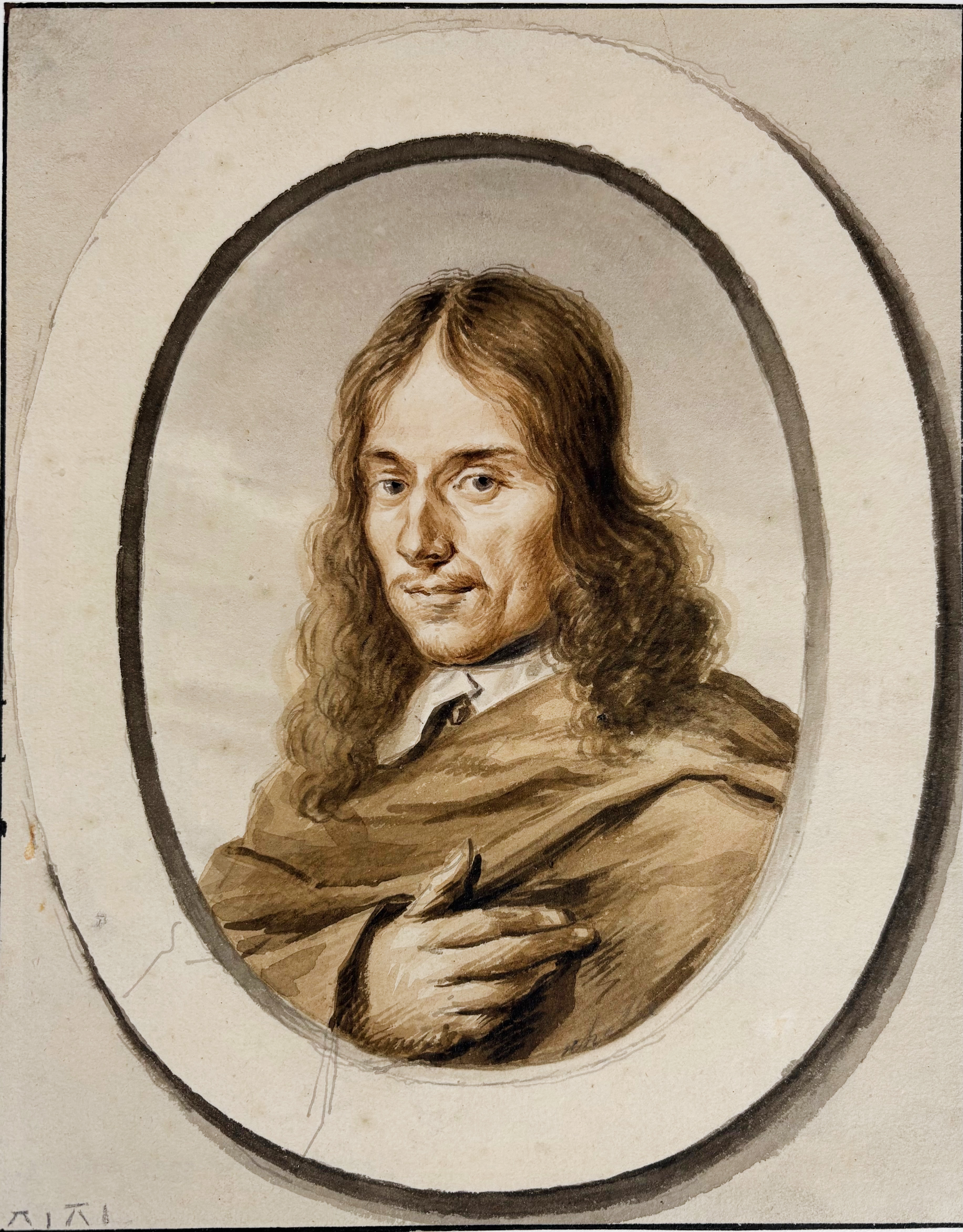POTHOVEN, Hendrik (1726-1807). (Portrait of Gerard J.G. Bacot). 1799. Drawing in grey wash. Signed in l.l. corner. 171 x 108 mm. Mounted along margins, under passepartout. Added: the engr. after this portrait by R. Vinkeles. -- Jan Willem PIENEMAN (1779-1853)? (Portrait of King Willem II). N.d. Drawing in pencil.165 x 103 mm. Mounted along margins, under passepartout. -- And 4 o., incl. a portrait of the painter Johannes Ouderogge. (6).