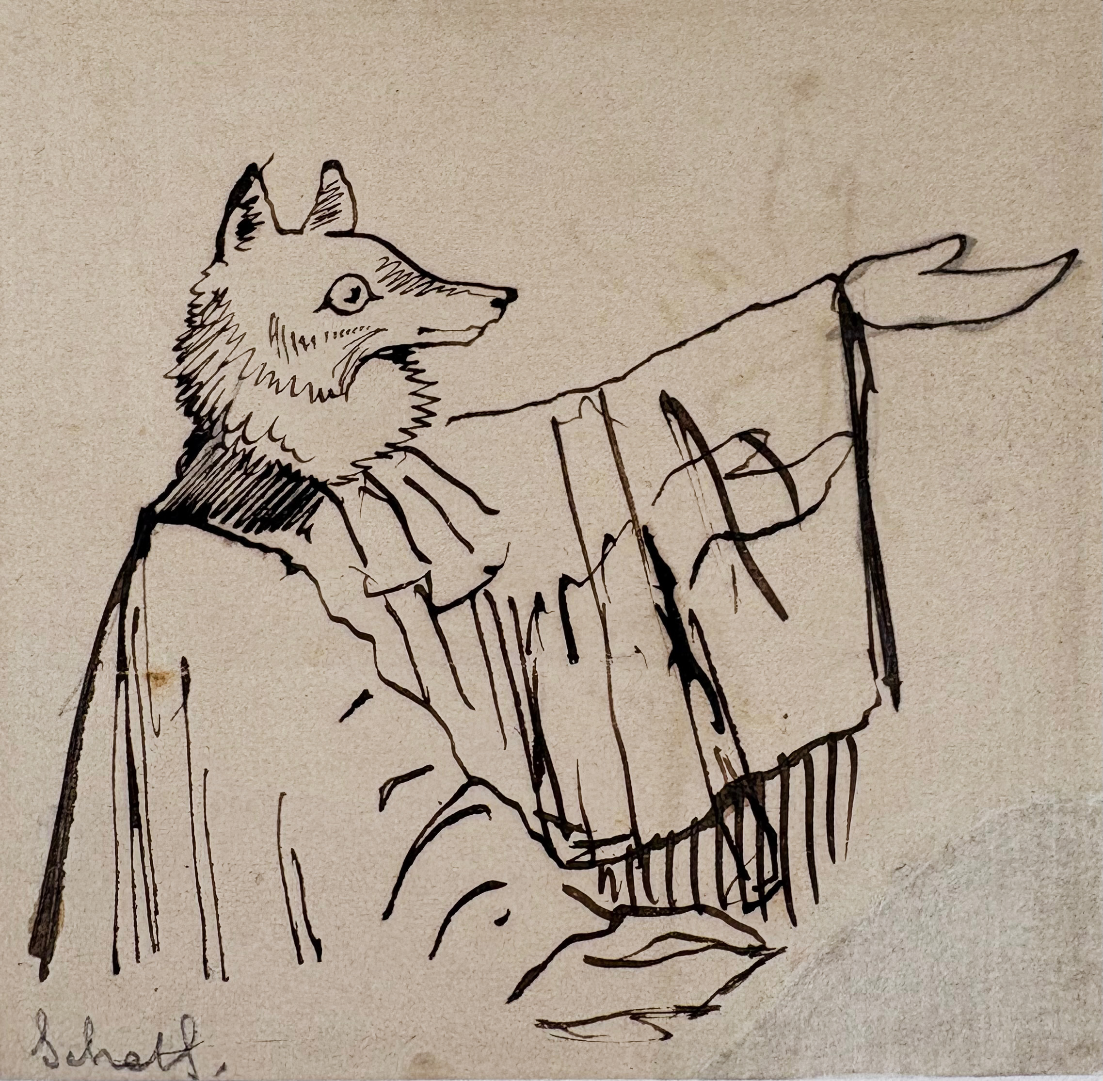 STUERS, Victor Eugène Louis ('Victor') de (1843-1916), attributed. (4 caricature drawings of lawyers represented as foxes). N.d. Drawings in black ink. Largest 100 x 75; smallest 42 x 39 mm. Laid down on 1 mount, under passepartout.