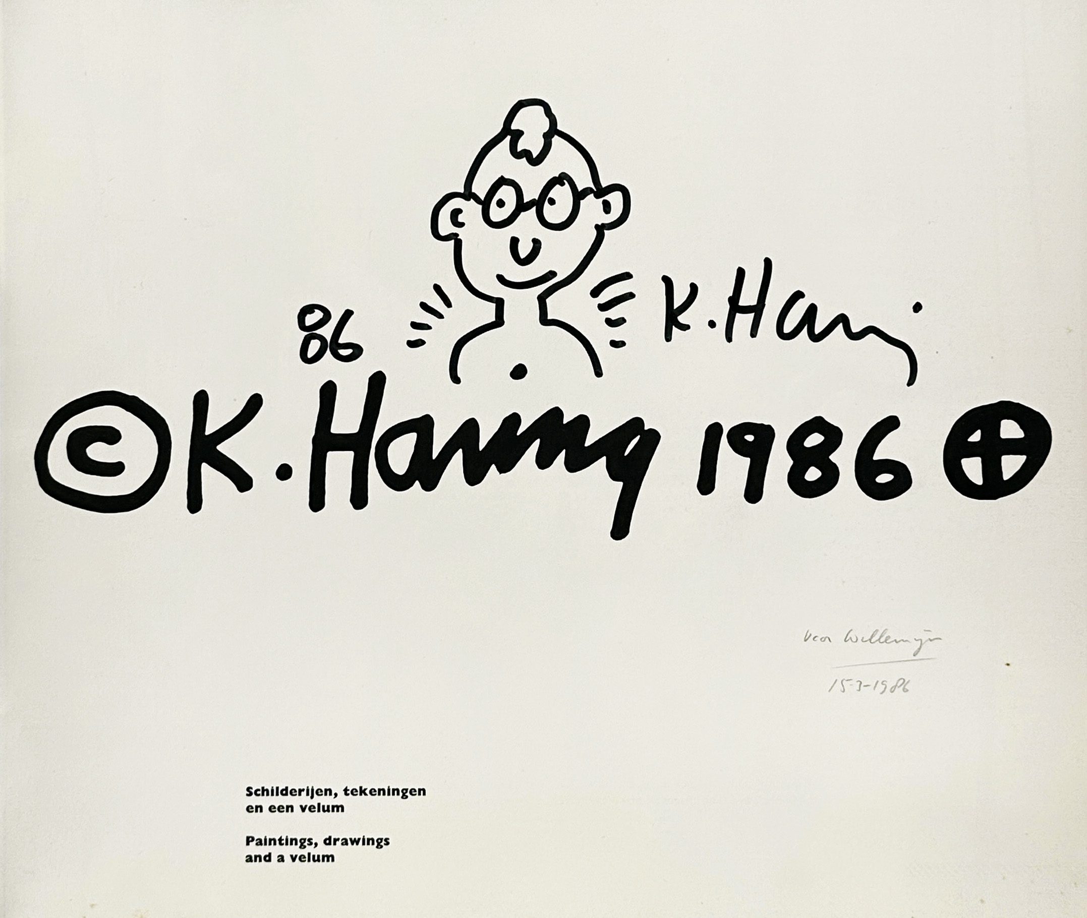 With an original signed self-portrait by Haring in felt-tip marker on the title-page, dedicated to 'Willemijn' and dated '86'.€ 2000
